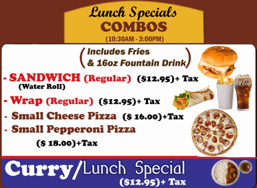 Lunch Combo specials available everyday (10:30AM-3:00PM)
